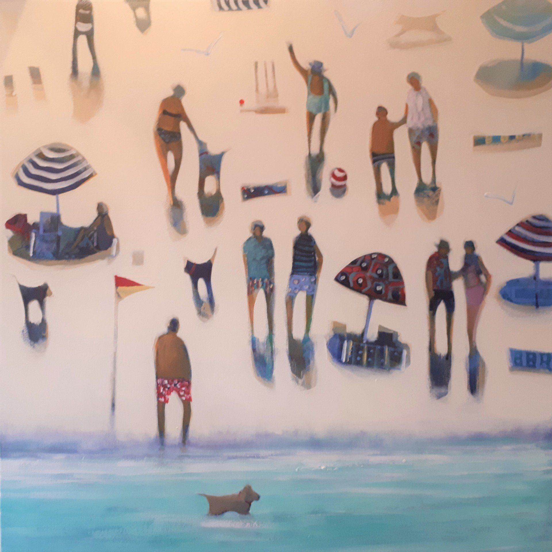 Bronwen lives and works as an artist near the beach in Albany. The location of her home studio provides the perfect setting in which to paint her iconic beach scenes. Although the beach and its people are the main inspiration for her work, she occasionally explores other themes of forests, deserts, gardens and rural landscape.