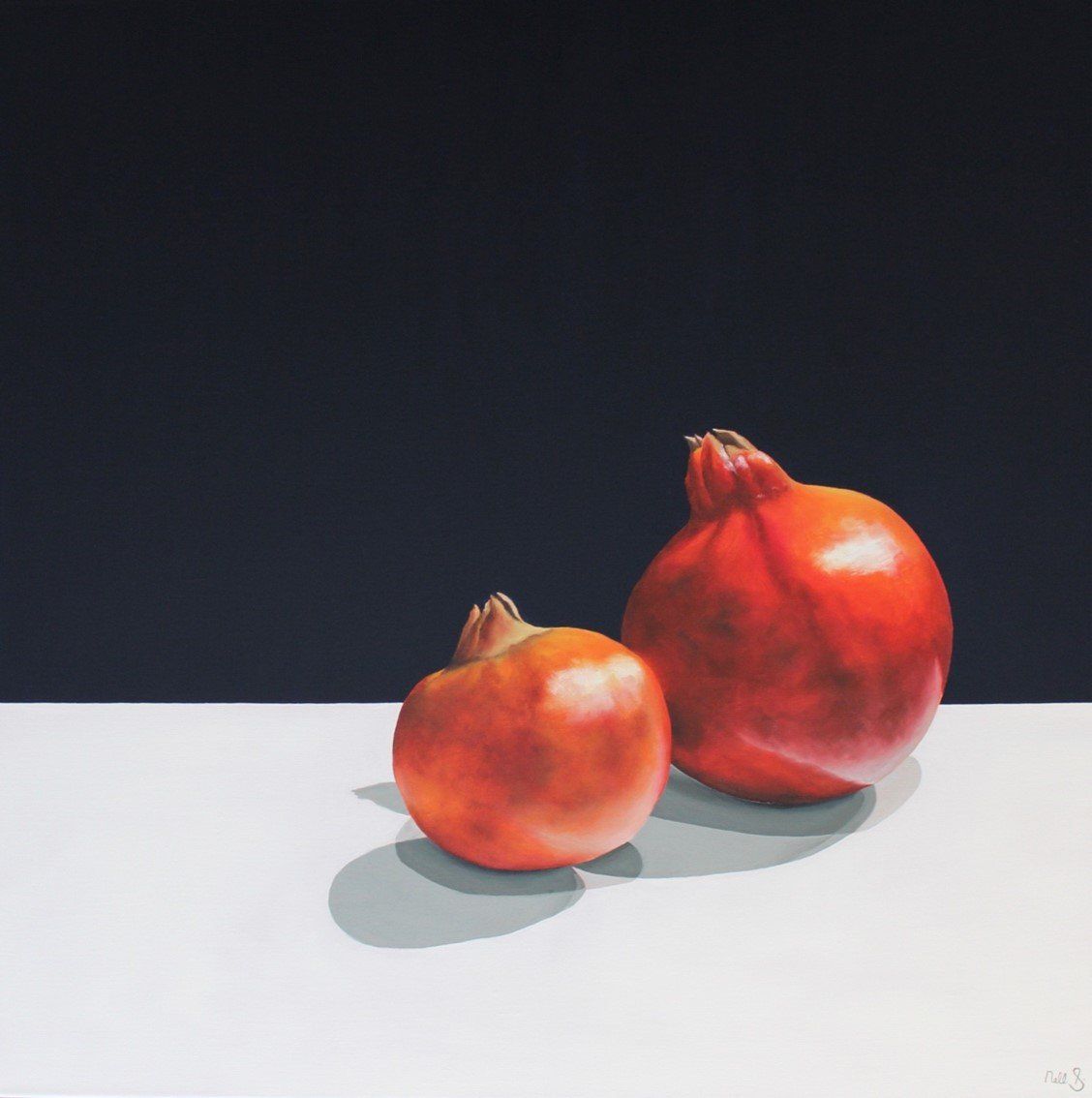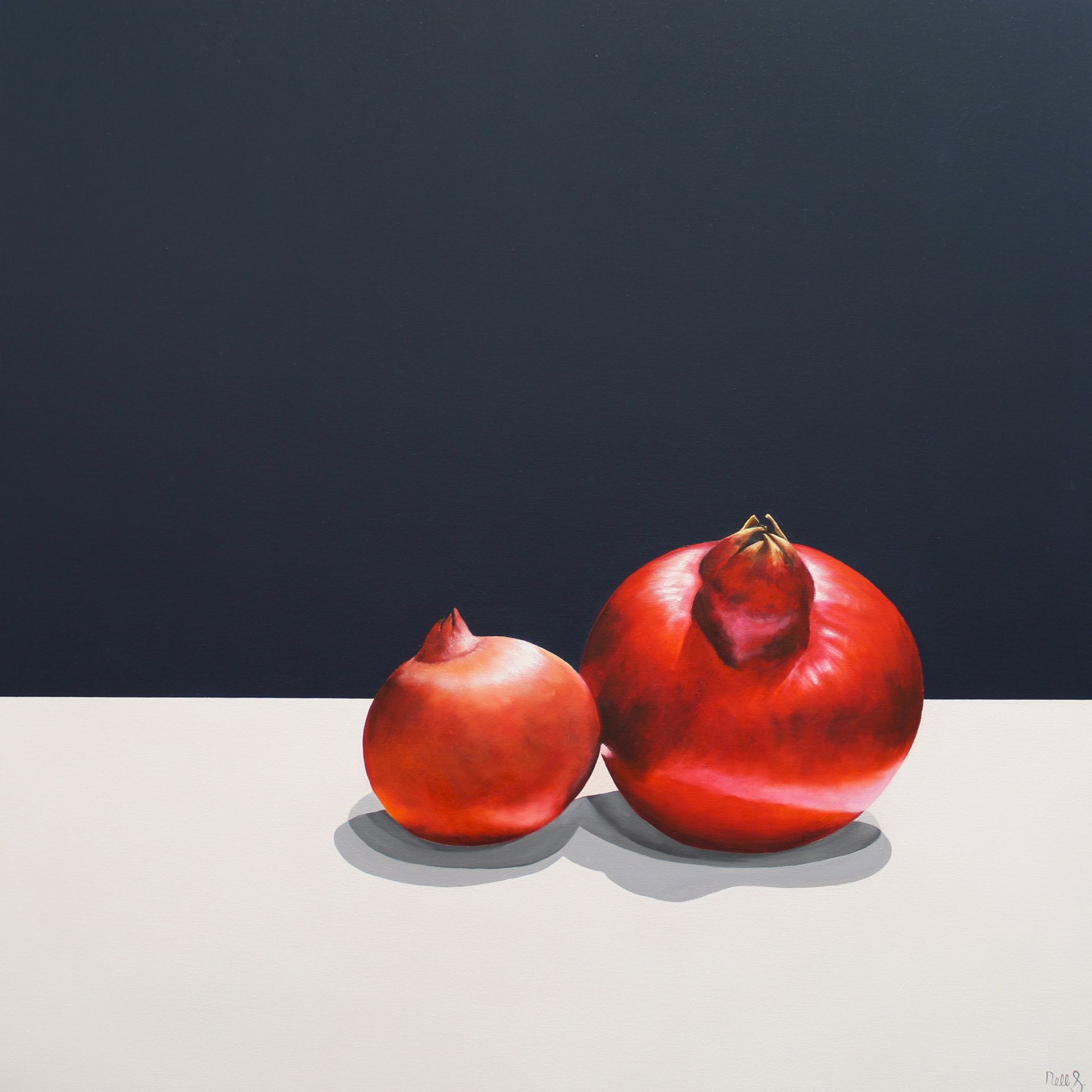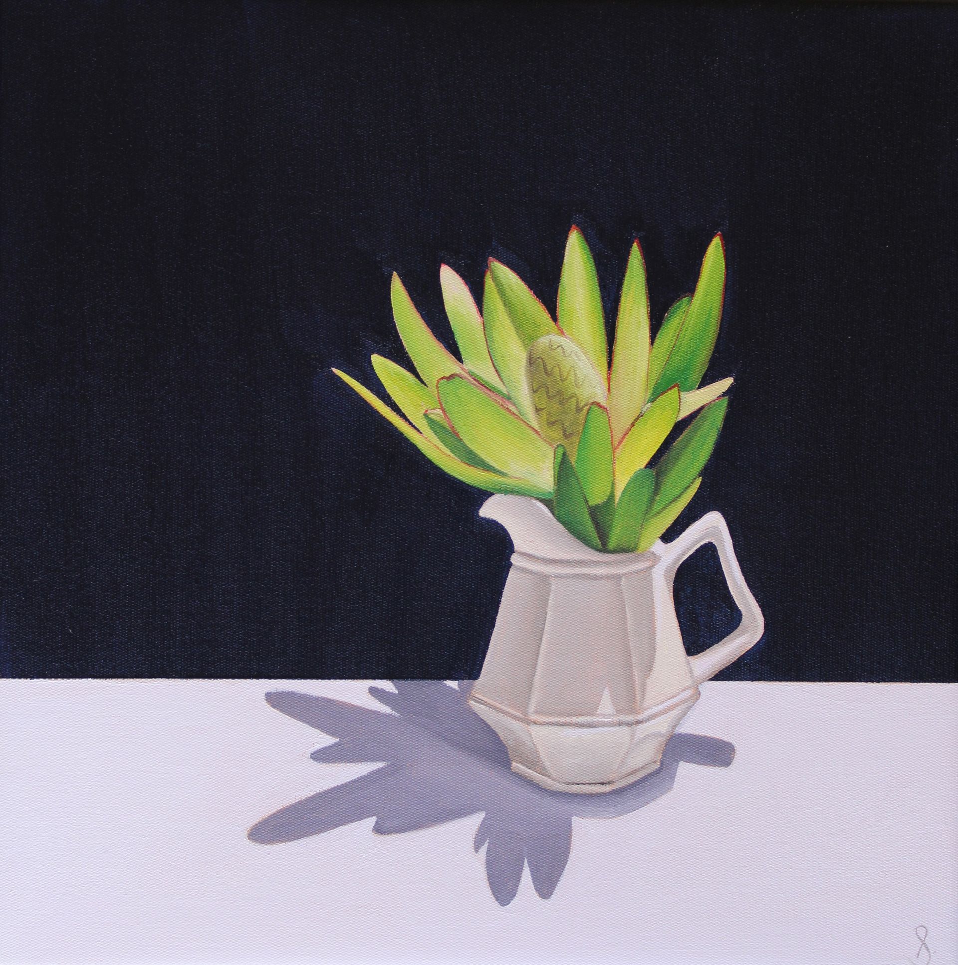 Nell has become fascinated with naturally occurring shapes and curves on her journey. The play of light and shadow. The composition of objects creating balance is key to her work. A simple but bold colour palette completes her paintings. And above all, shadows.