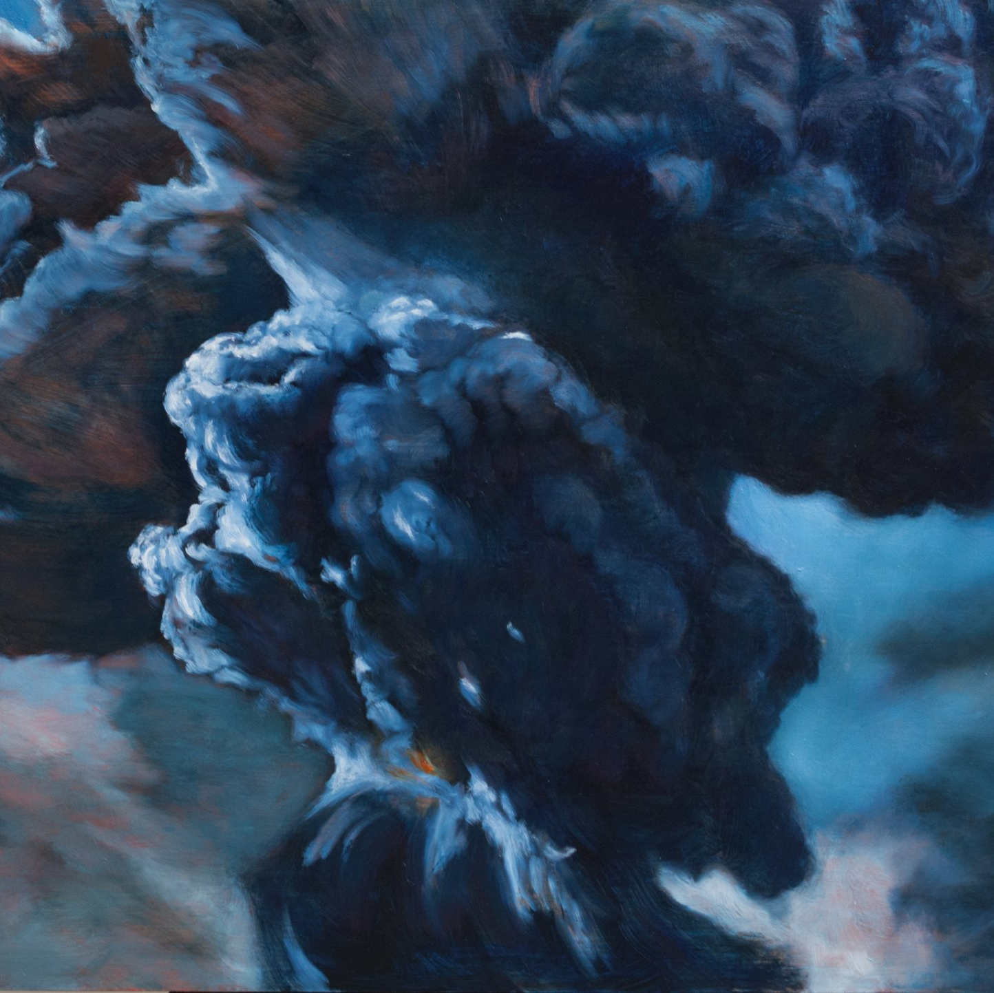 Kirsten has a fascination with fire, smoke and atmospheric moods, and from her previous series has made a progression toward pyrocumulus and volcanic clouds. The sheer power, threat and awe inspiring monolithic quality of these natural forms is a humbling reminder of how small and insignificant we really are. She finds comfort and a sense of freedom in the surrender, knowing that we belong to the earth, come what may.