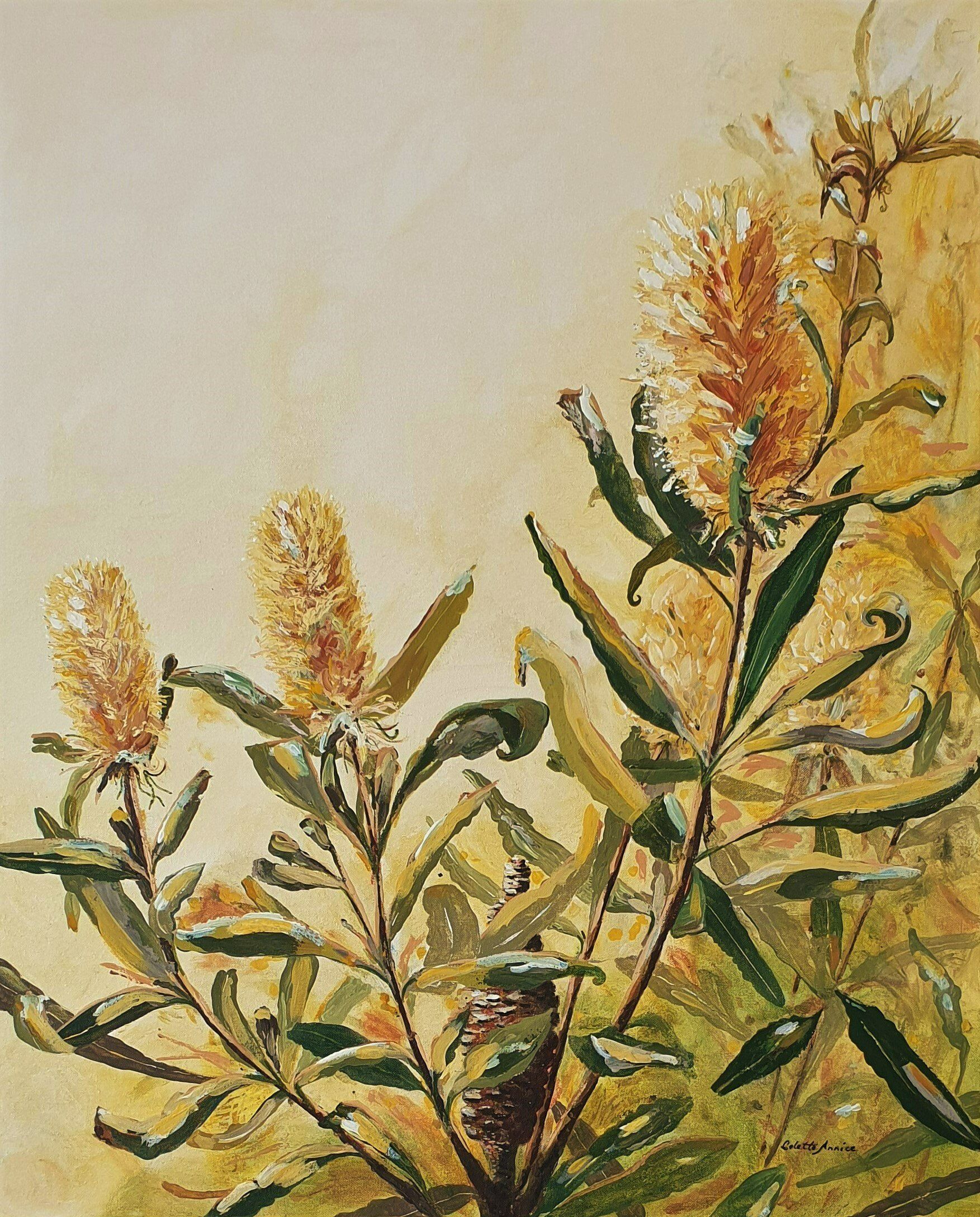 In earlier years I studied design before becoming a watercolour artist, then finding a fascination with acrylic on canvas. Previously, I have been part of The Cannery Arts Centre in Esperance, participating in regional art competitions and group exhibitions, selling many artworks and delivering botanical painting demonstrations and winning 4 awards at their Biennial Art Awards. I have held a very successful joint exhibition at The Cannery Arts Centre Gallery in Esperance.