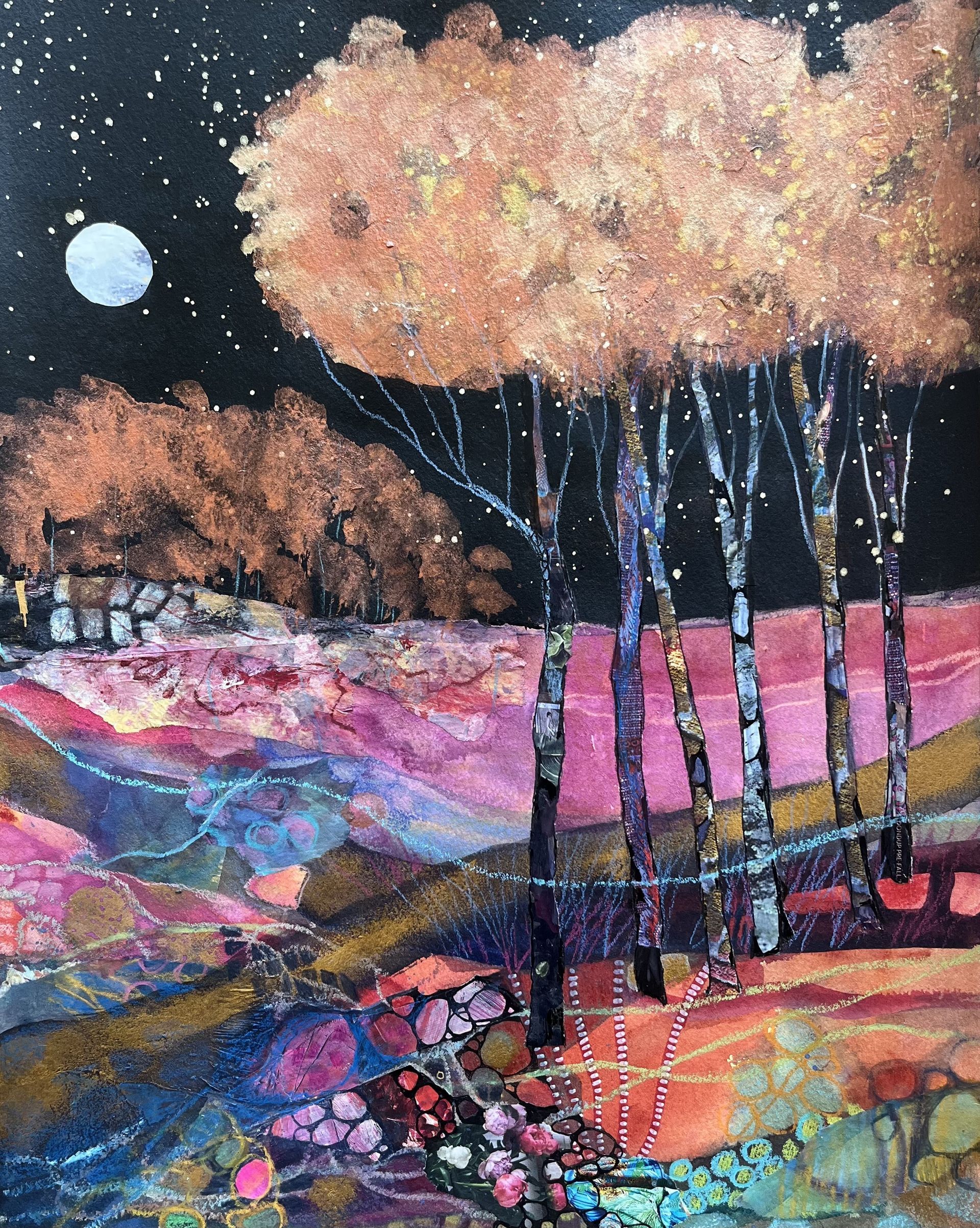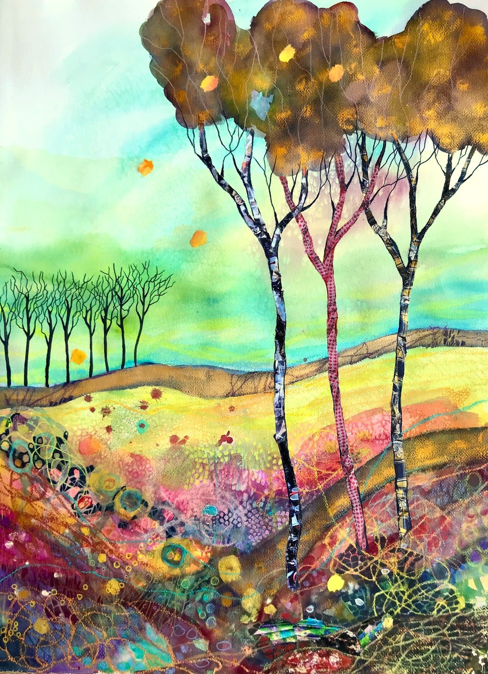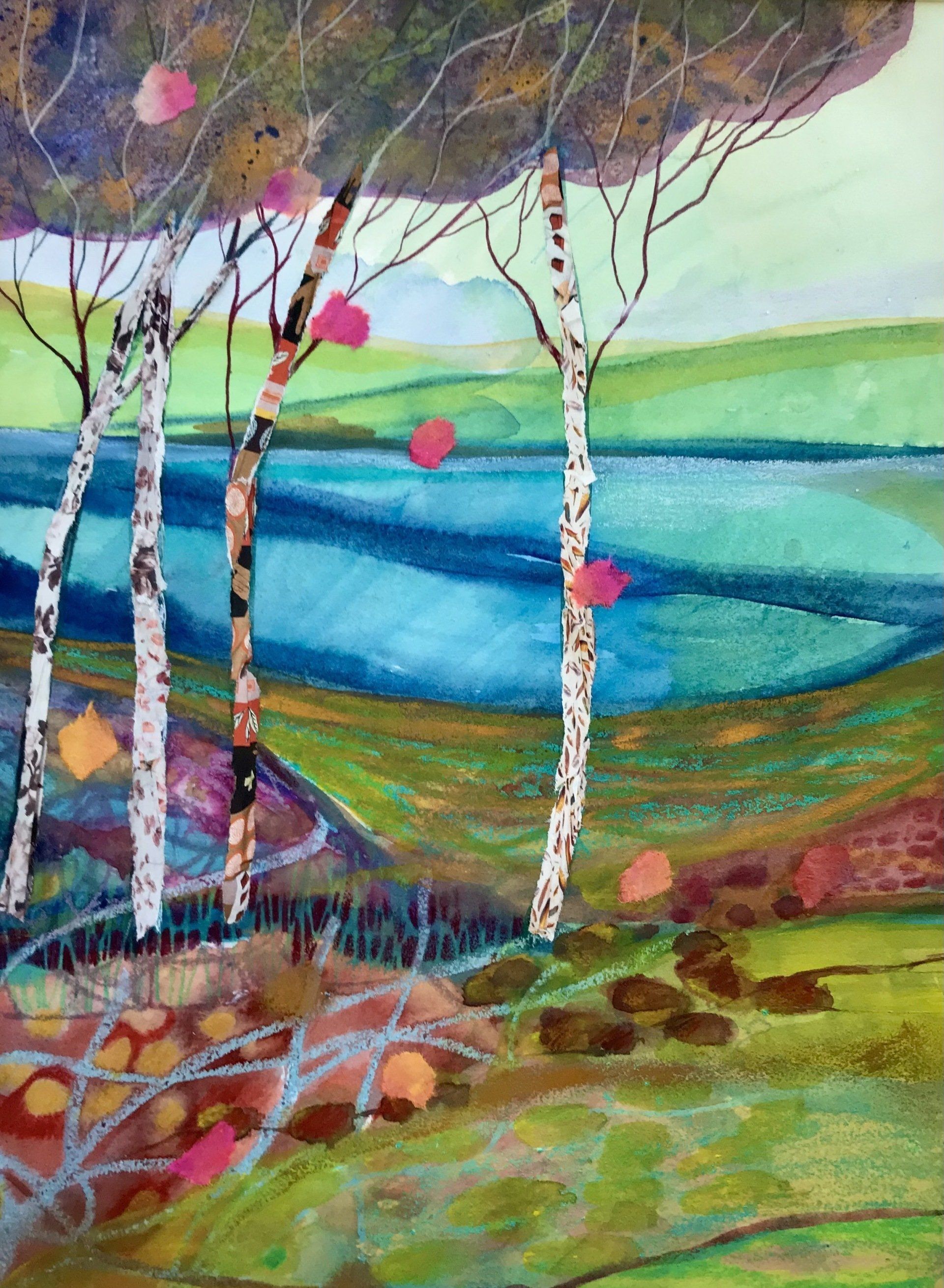 In her more detailed drawings and reflections she is investigating habitat and the preciousness of the natural world, while her more abstracted landscapes which include tangles of lines, strokes and marks (some spontaneous, some careful and following observation) reflect her response to the history and soul of a place as well as an awareness of movement and light.