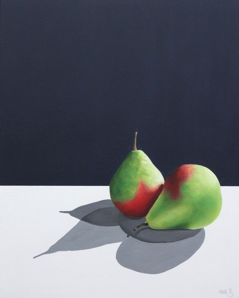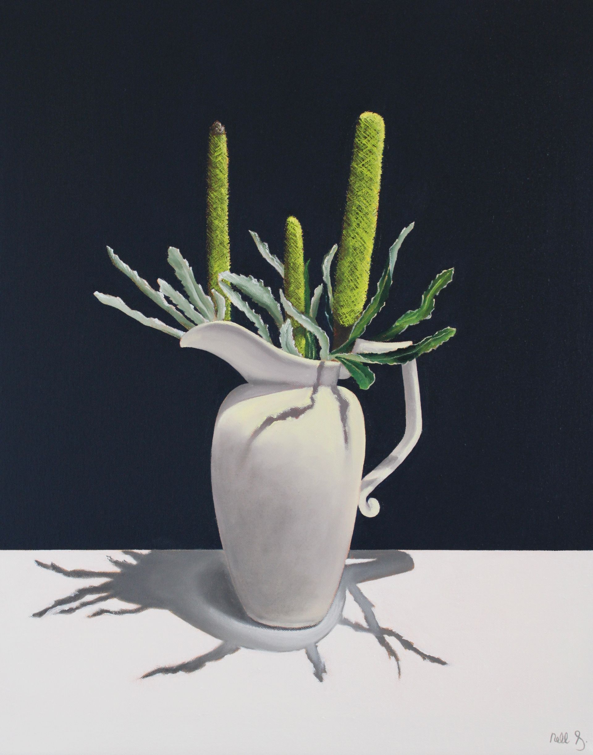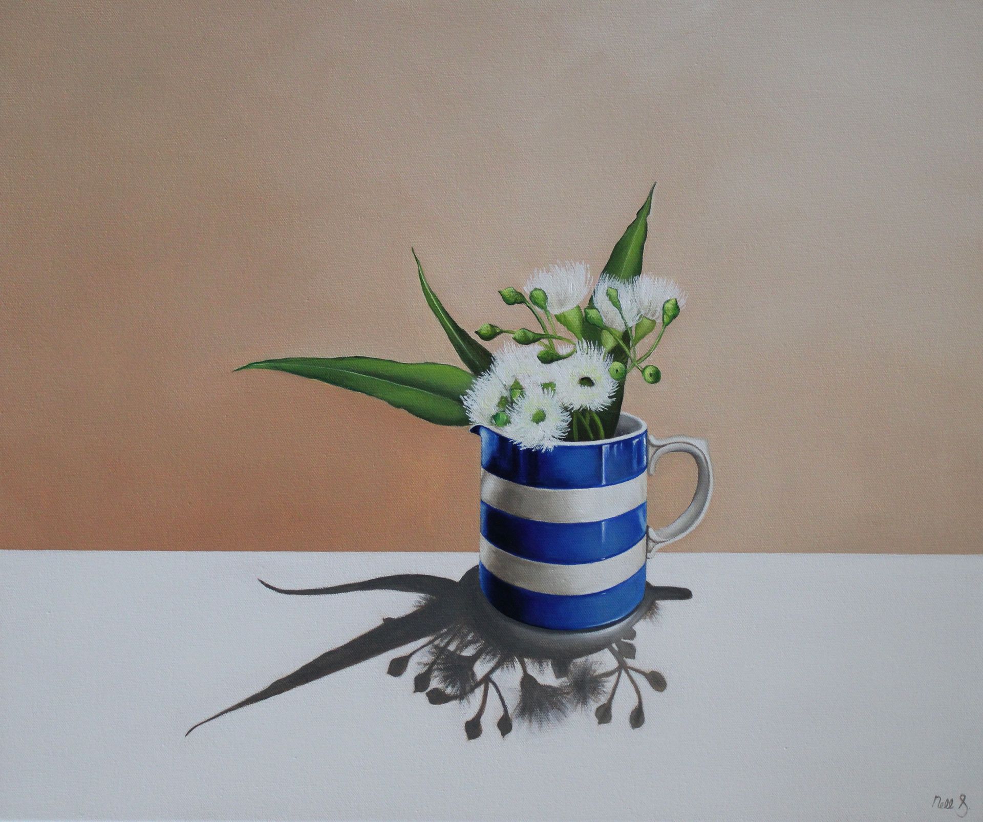 Nell has become fascinated with naturally occurring shapes and curves on her journey. The play of light and shadow. The composition of objects creating balance is key to her work. A simple but bold colour palette completes her paintings. And above all, shadows.